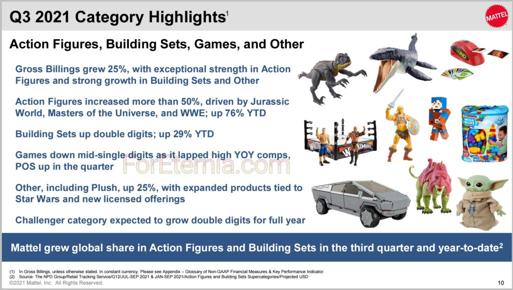 So, considering what the President of Mattel told us in the Second Quarter, we’re not surprised to find out in Mattel’s Third Quarter Earnings Report covering July, August, and September 2021 that their gross billings grew with exceptional strength in action figures!