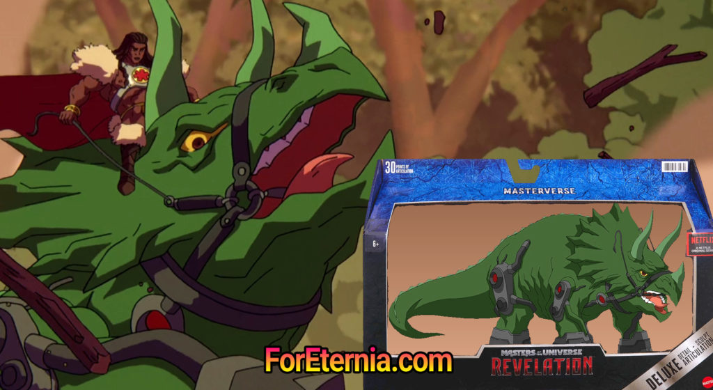 This horned dinosaur from Preternia, this cybernetic giant green Triceratops, this steed to the great King Grayskull would just be a fantastic addition to the Masterverse line. If King Grayskull didn’t look badass enough already, imagine strapping the great King to the back of this bad boy, ready for the wild hunt! Now this would be awesome!