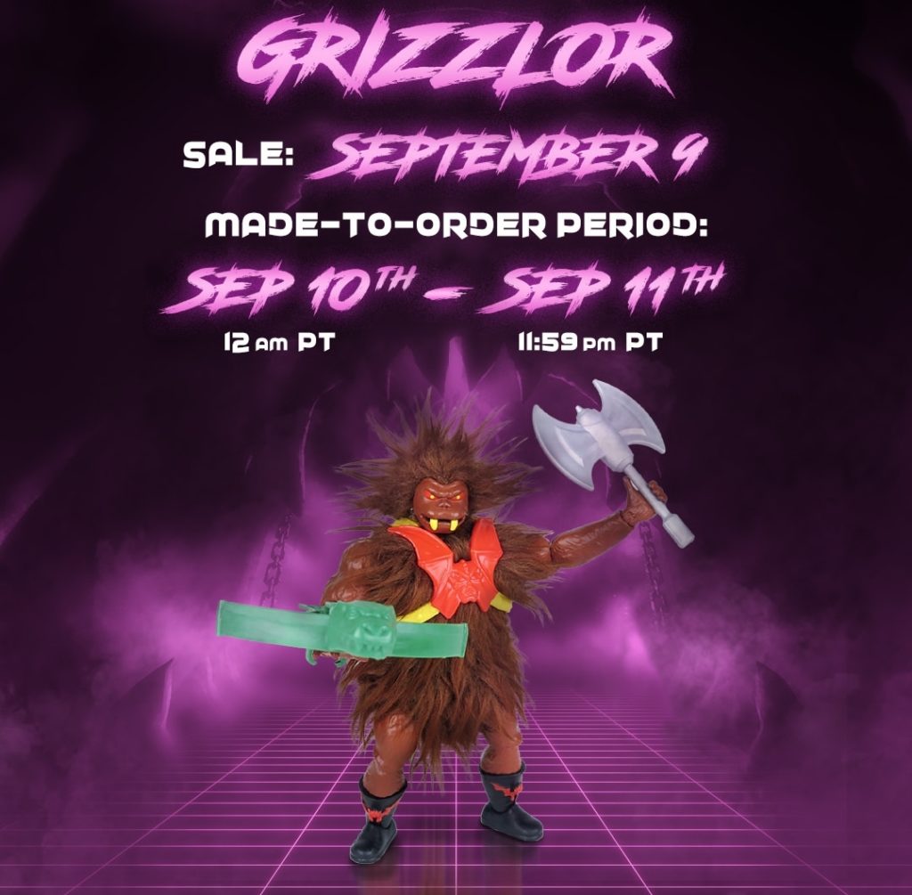 Coming in September: Grizzlor! A limited quantity of Grizzlor figures will go on sale day one, but if you miss out we’ve got you covered — a second made-to-order batch goes on sale the very next day. Sale: Sep 9th at 9am PT Made-to-order period: Sep 10th at 12am PT – Sept 11th 11:59pm PT