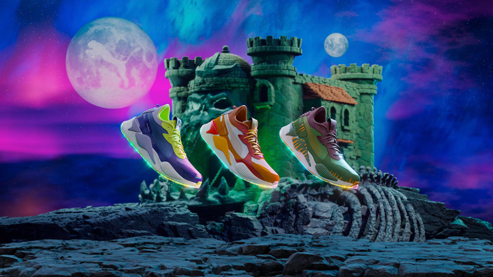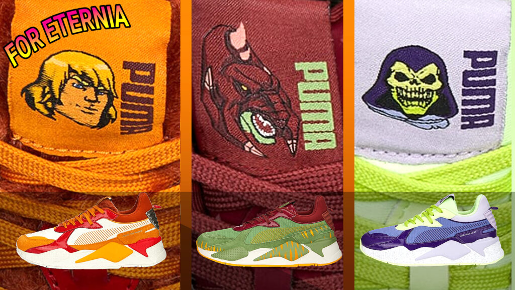 That’s right, PUMA has taken their retro flair RS-X style sneakers and released them in three new “Masters of the Universe: Revelation” themes: He-Man, Battle Cat and Skeletor!