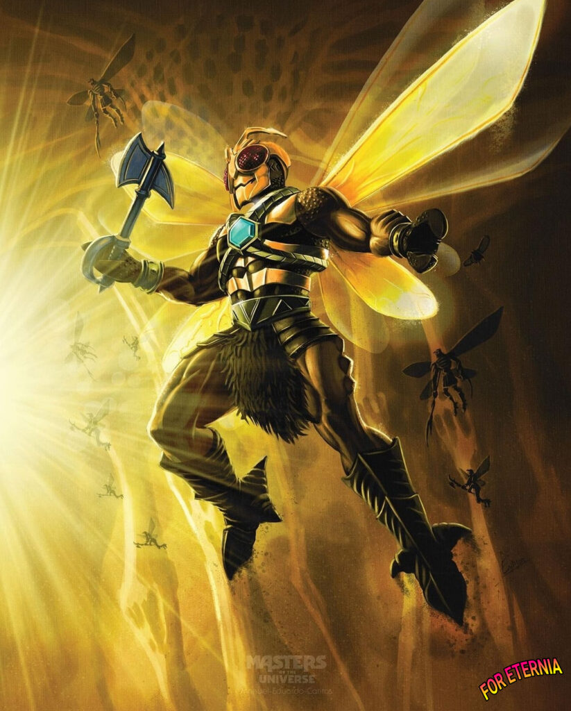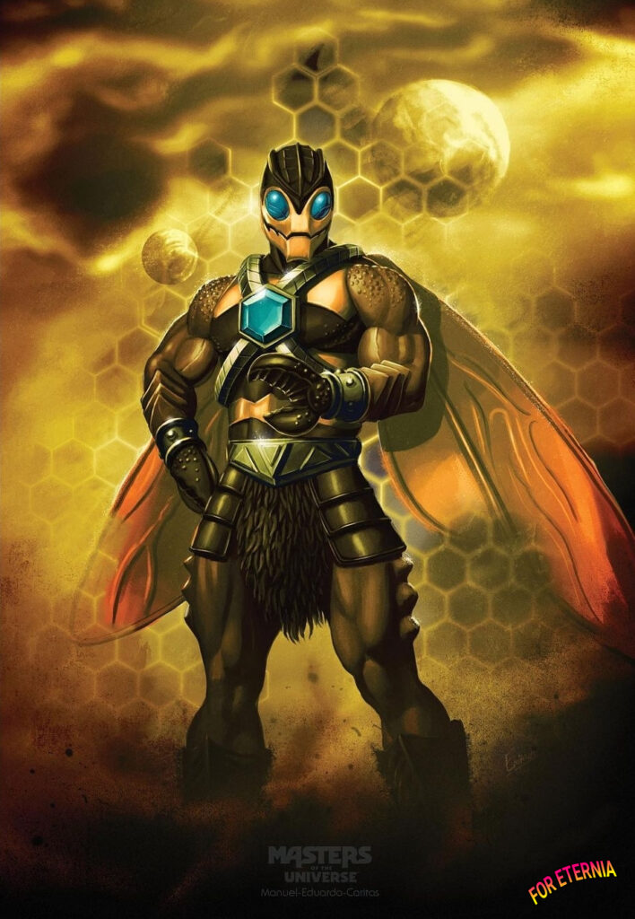 “After the Cataclysm destroyed the Great Queen’s Nest, Eternia’s Bee People known as The Andreenids nearly collapsed as a society. They were saved by the warrior-lord Buzz-Off, who reclaimed order and set off to establish a new home for his people as their king.”