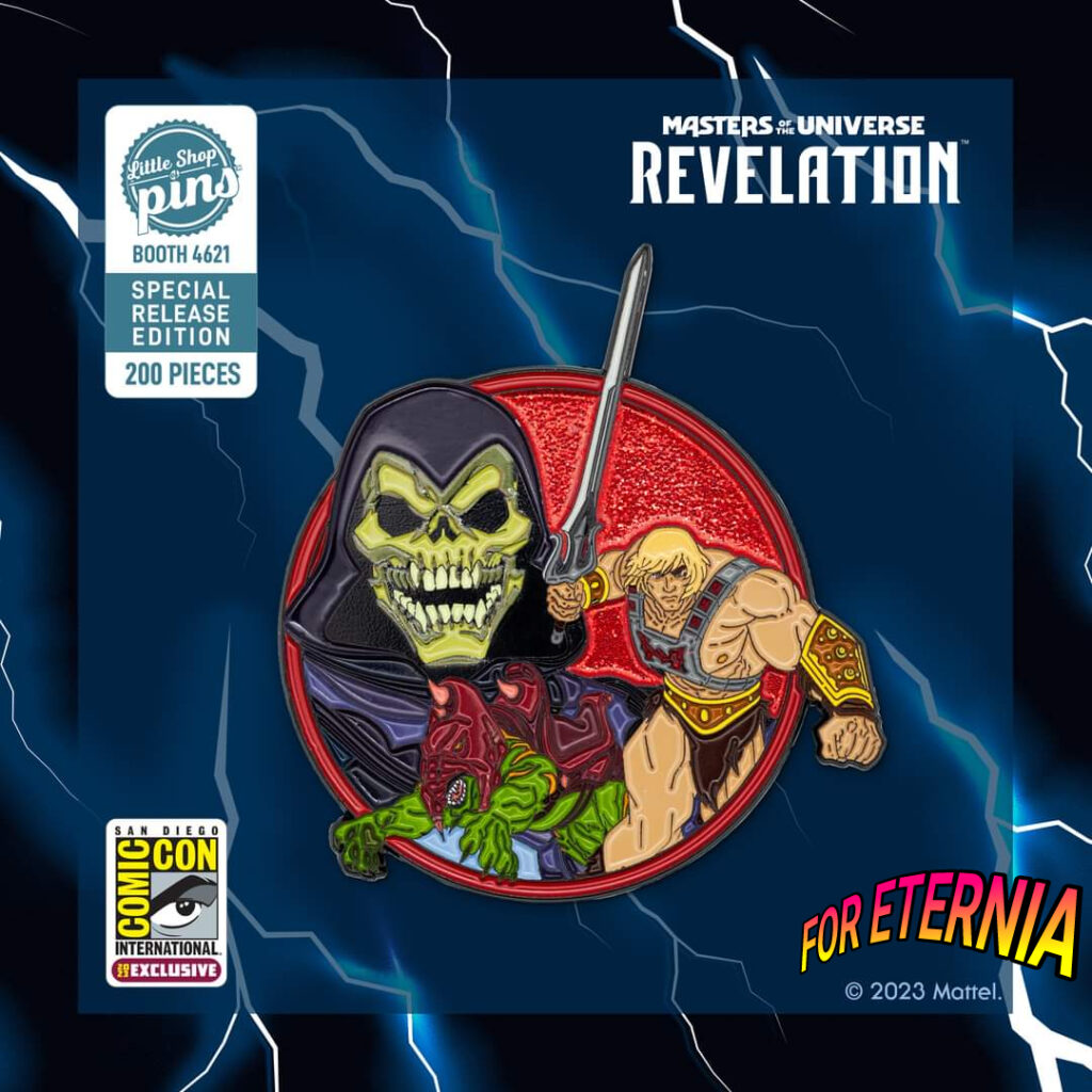 Anyone interested in these exclusive “Masters of the Universe: Revelation” limited edition pins can find them at the San Diego Comic-Con, Booth 4621.
