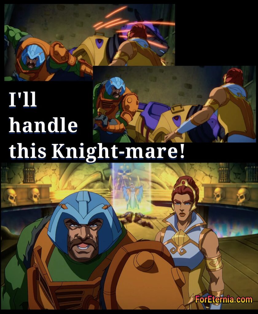 Night Stalker was even referred to as “Knight-mare” (a name originated from the Filmation company) in the 2021 Netflix series Masters of the Universe: Revelation.