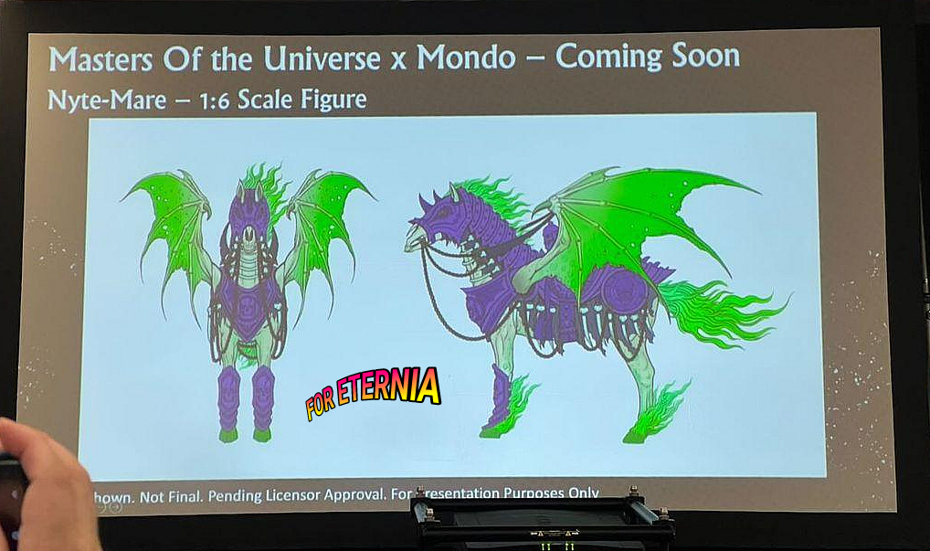 Probably the most interesting figure out of the bunch (solely because Mattel has now endorsed Mondo creating brand new charactes in this IP), is Mondo’s new four-legged figure that has never been seen before on Eternia or Earth until now. It is Scare Glow’s frightening steed, Nyte-Mare!