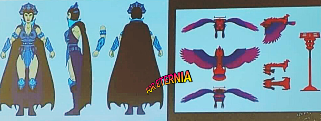 Now let’s check out the rest of the design art Mondo showed, including a newly announced Sky Sled and Disco Skeletor figure… as well as three characters already previously announced… Evil-Lyn, Orko and Teela! And then there’s the Retro Scare Glow jumbo figure!