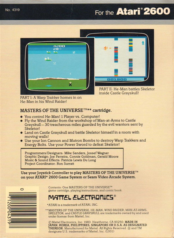 Masters of the Universe: The Power of He-Man was a side-scrolling video game that was published by Mattel in 1983. Playable on systems like the Atari 2600 and Intellivision video game consoles, players took control of He-Man as he piloted a Wind Raider on a dangerous mission to defeat the evil Lord of Destruction, Skeletor.