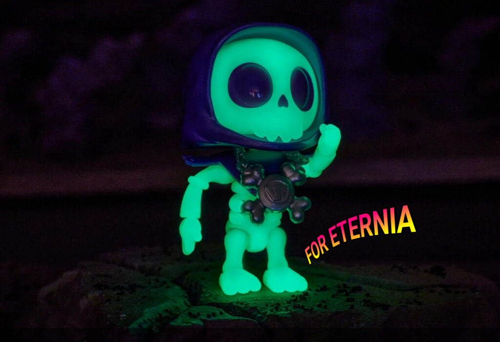 - Skilled Skeleton glows in the dark and comes with six swappable hands, removable hood, armor and a shareable VeeFriends flex chain.