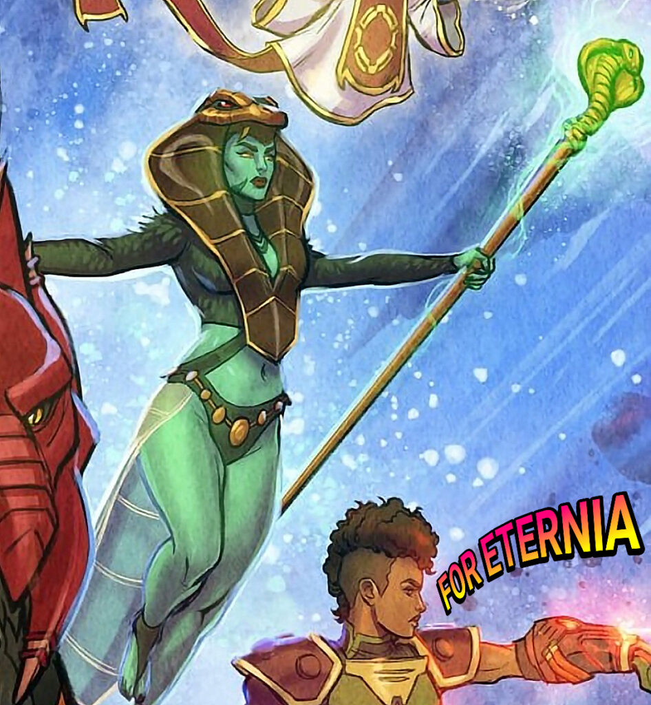 Is that Teela? We won’t label this Teela with new names like “The Green Goddess” yet simply because we are not certain what is exactly occurring to Teela in this new “Masters of the Universe: Revolution” poster and continuity, but whatever occurred, green Teela in her Snake Armor outfit looks absolutely stunning here in this new “Masters of the Universe: Revolution” poster.