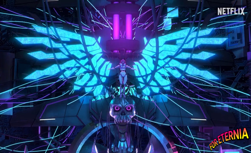 In the teaser trailer we witnessed a curious scene where Motherboard was growing a pair of gigantic techno wings above an ominous giant skull with terrifying eyes.