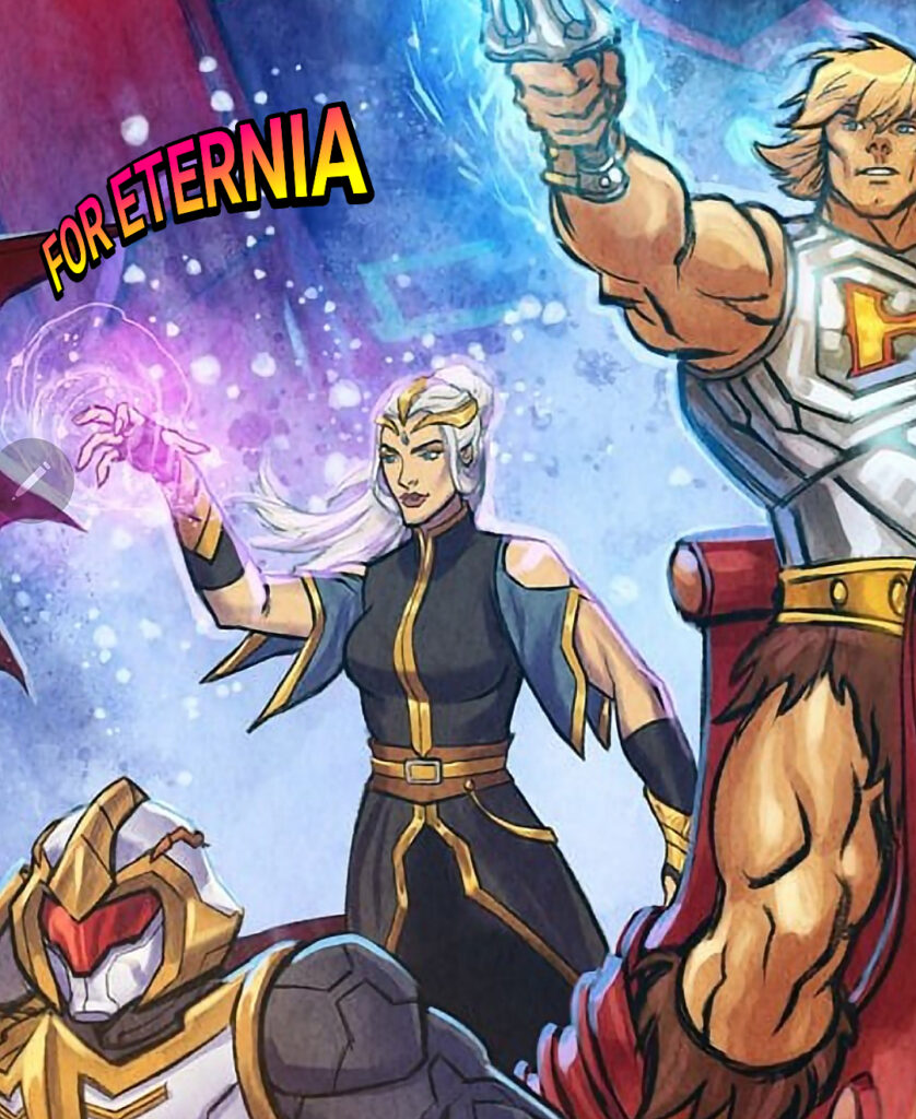 Sporting a similar outfit in this poster to the what we saw the “Liberated” Lyn wear at the end of “Masters of the Universe: Revelation”, the once right hand of Skeletor now appears to be standing alongside He-Man and the Heroic Warriors, as they prepare to beat back Hordak and his Evil Horde.