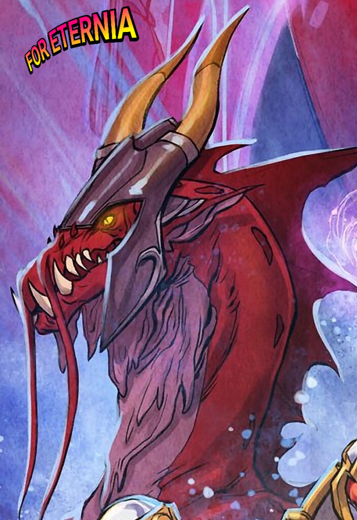 Recreating the red skin aesthetic originated from the 1983 classic Filmation series “He-Man and the Masters of the Universe”, the one thing notably absent from the Revolution version of this old and wise dragon was his iconic horned helmet.