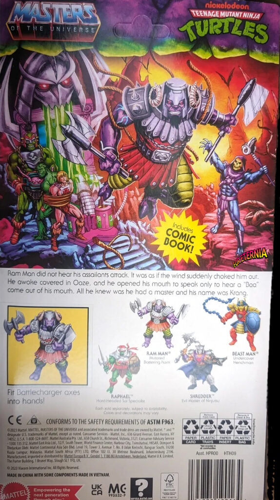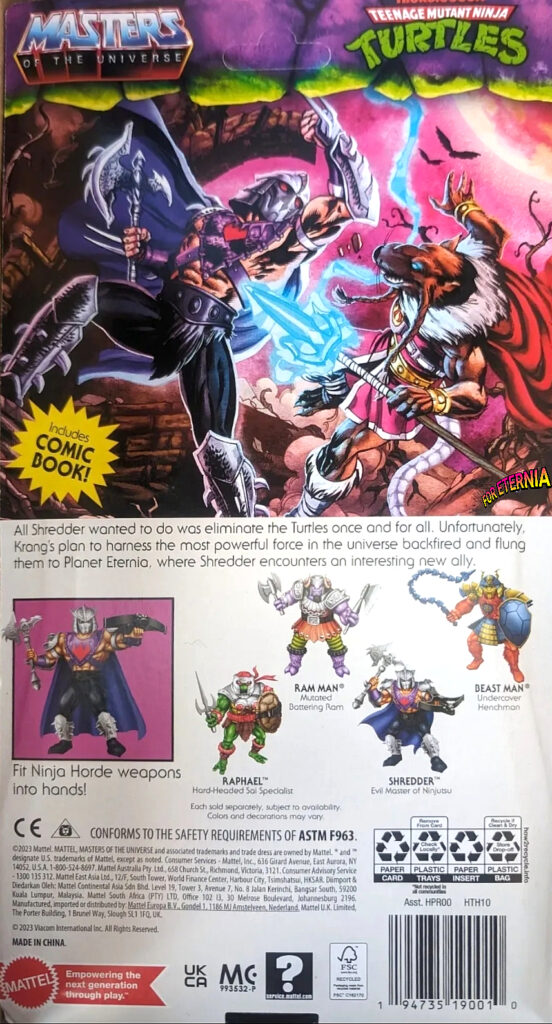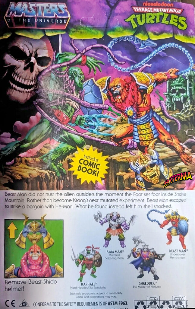 And before we check out the packaging backs, we would be remiss in our duties not to point out how Splinter is teased in the artwork for the Shredder figure… dressed like no one other than King Grayskull!