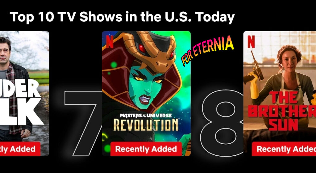 For the second day in a row, “Masters of the Universe: Revolution” has ranked in Netflix’s Top 10 TV Shows in the United States, moving one spot down to the #7 spot. Check it out!