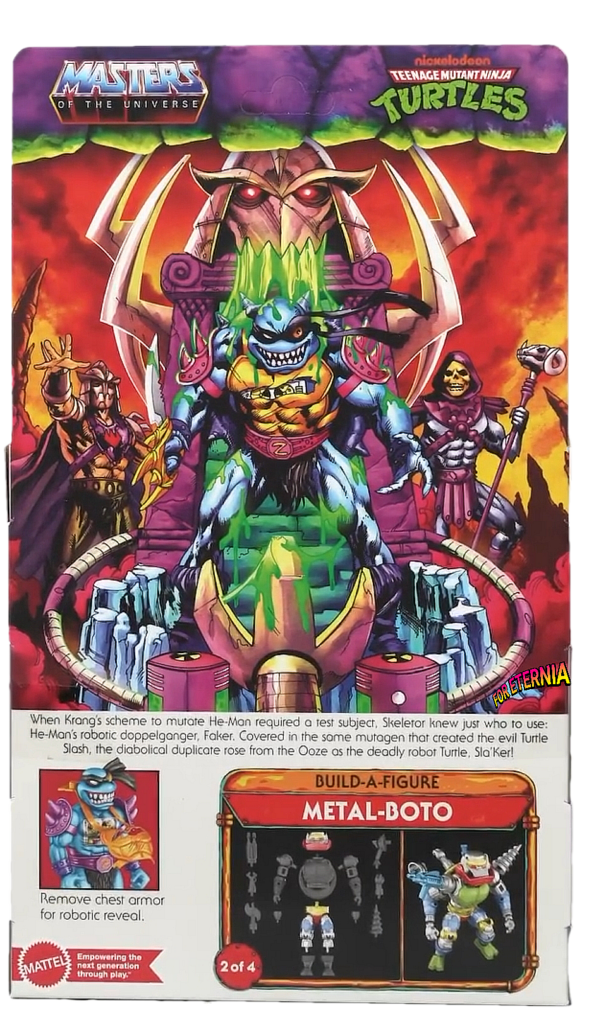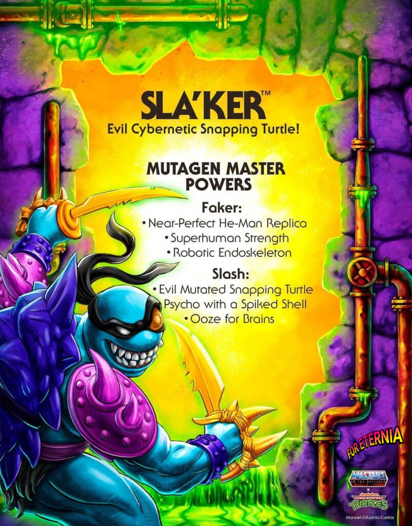 Courtesy of Mattel’s packaging designer Roy Juarez, see what happens when Skeletor’s He-Man doppelganger Faker is covered in mutagen ooze… now updated with more art by packaging arist, Wellington Alves! Check it out:
