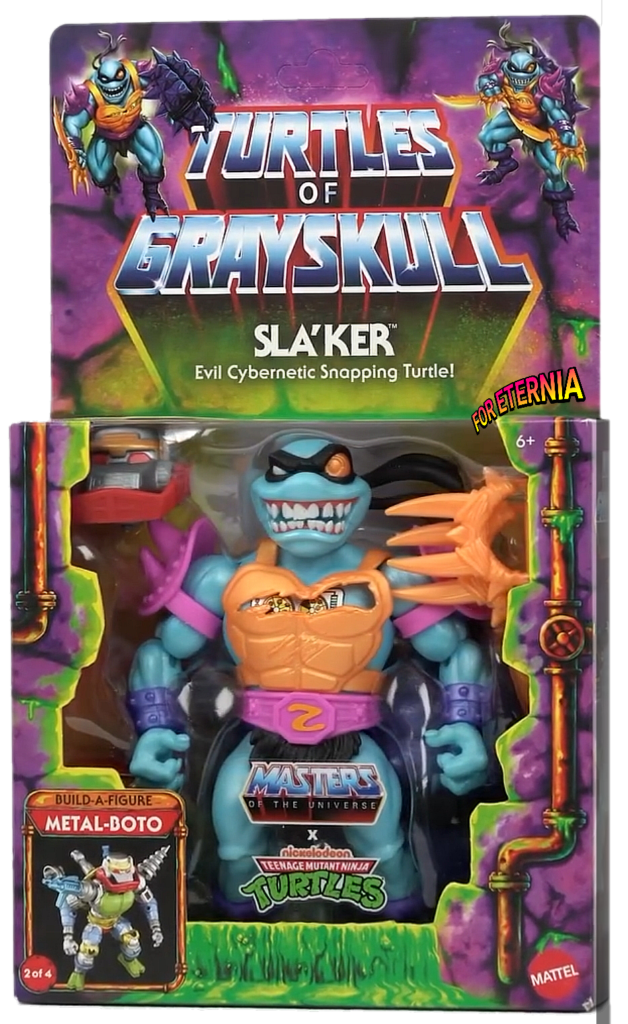 We now have a look at the packaging for the upcoming Masters of the Universe Origins “Turtles of Grayskull” Sla’Ker figure.