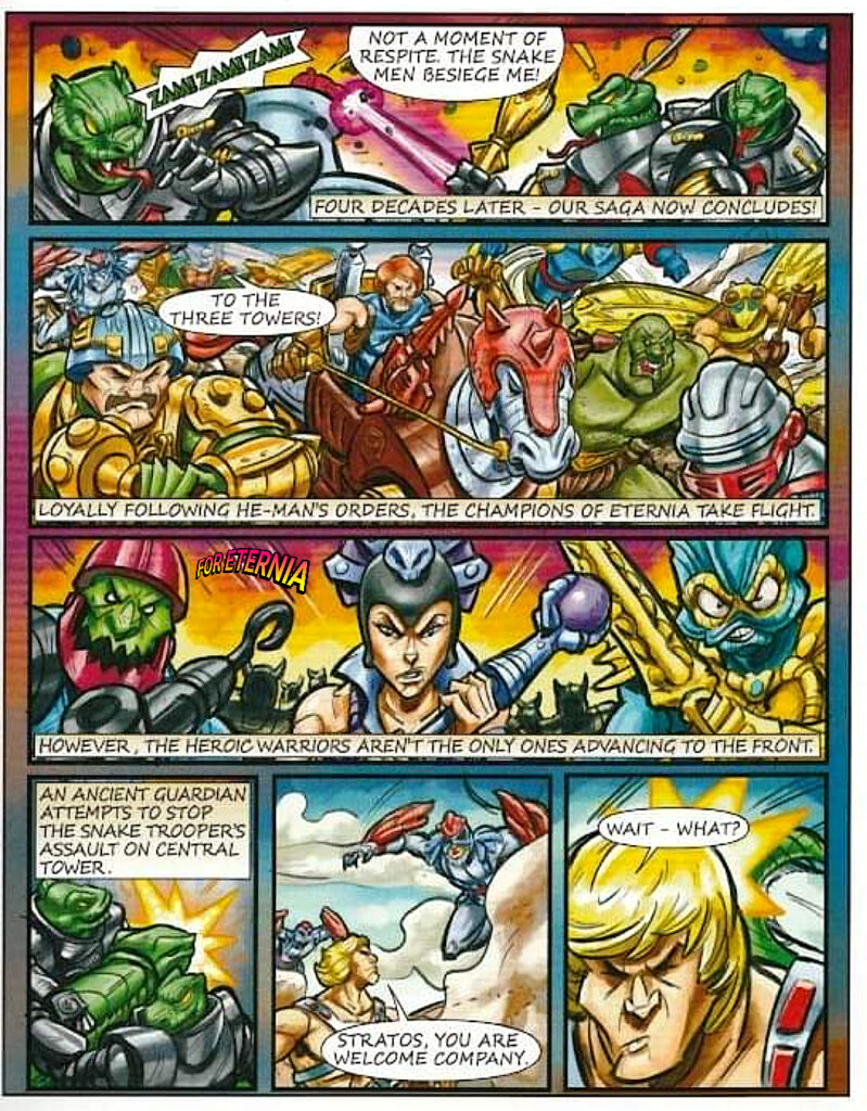 Continuing not as much of a cliffhanger as this new minicomic claims it to be, “Battlefield Eternia” picks up where “The Ultimate Battleground” left off, 40 years later.