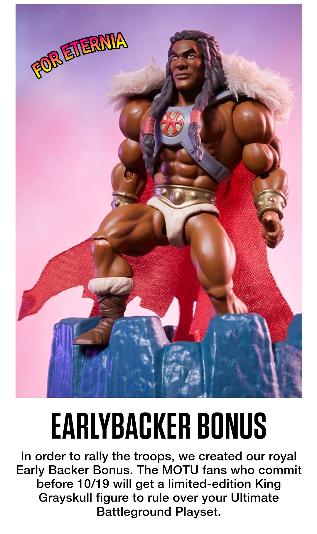 As an incentive to support the endeavor early, fans were offered an “early backers bonus” in the form of a Origins King Grayskull figure.