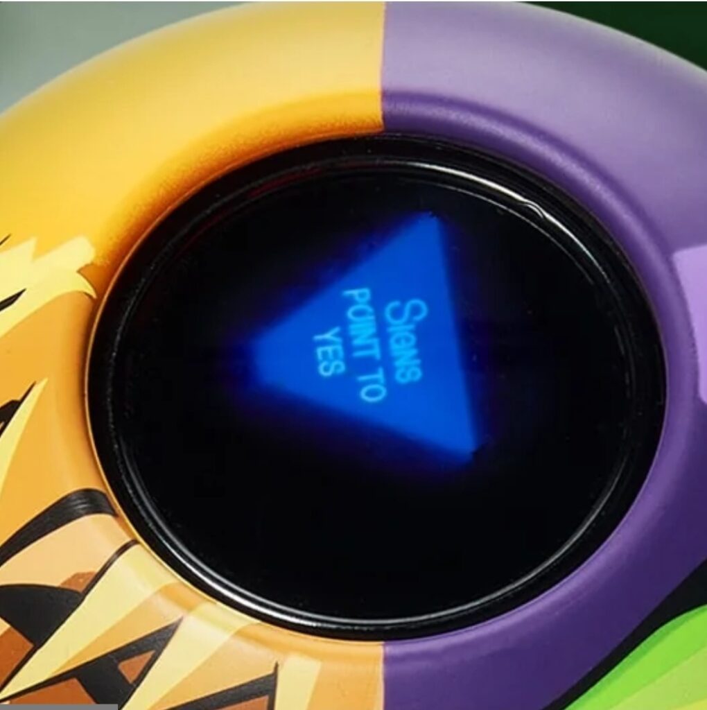 Invented in 1946, the Magic 8-Ball is a fortune-telling sphere made to look like an oversized eight ball from the sport of pool. Inside the ball is a window revealing liquid surrounding a multi-sided die with different answers etched on each side. To use the Magic 8-ball, you hold the ball with the window facing downward, ask it a question, and then flip the ball over and read the die’s answer.