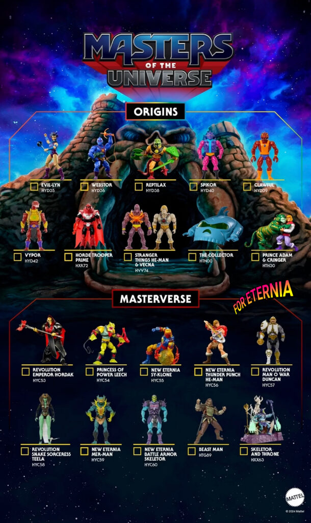 Check out Mattel’s new promotional checklist poster showing us all the figures that will be available in both Origins and Masterverse: