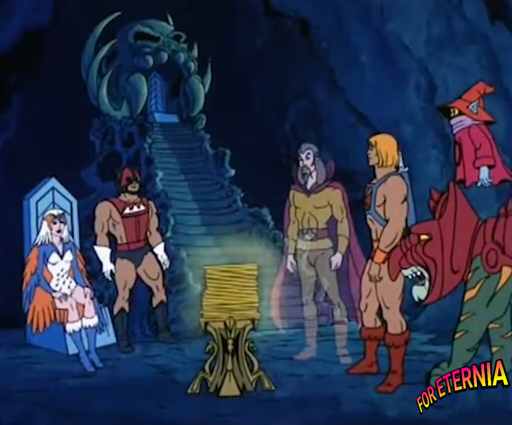 In the episode “Golden Disks of Knowledge” from the 1983 classic Filmation series “He-Man and the Masters of the Universe”, someone or something began haunting Castle Grayskull.