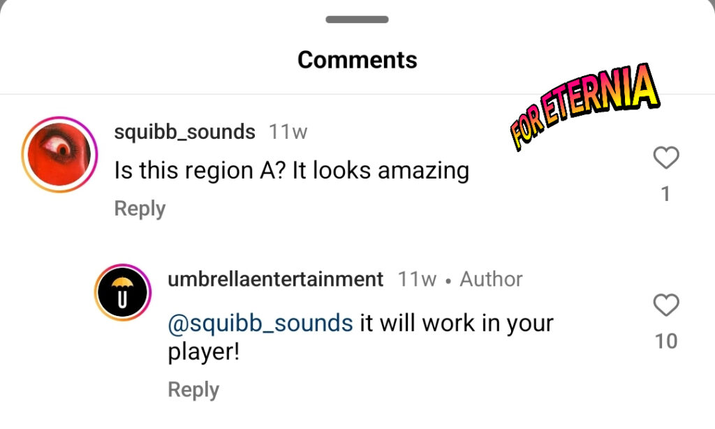 So let’s break down these changes. The first concern is playability. If you recall, Umbrella Entertainment’s original position especially to fans in the United States (Region-A) was this disc would indeed play on their machines, as indicated per their comments via Umbrella Entertainment’s official Instagram account.