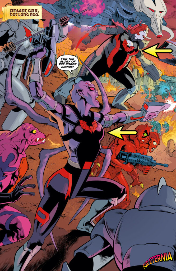 Now on page four of that five page preview, some fans were curious about two new, never-before-seen characters, fighting along side the Evil Horde.