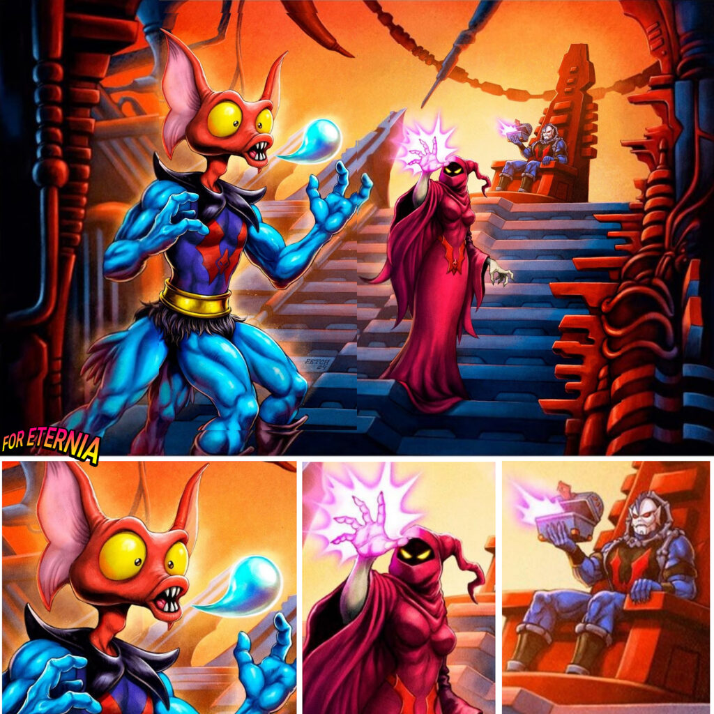 First, we begin with a better look at the terrific cardback artwork for the upcoming Origins “Cartoon Collection” Mantenna Action Figure, wonderfully illustrated by artist Francisco Etchart. Check it out: