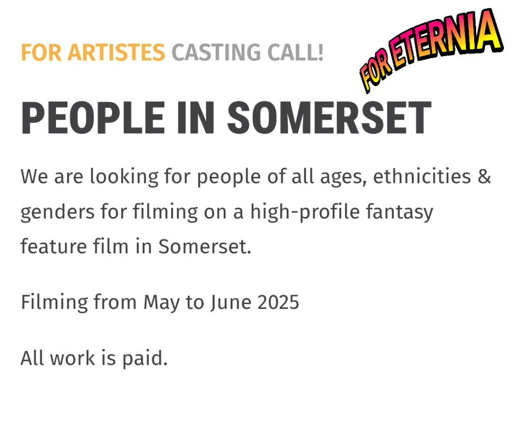 We are looking for people of all ages, ethnicities & genders for filming on a high-profile fantasy feature film in Somerset.