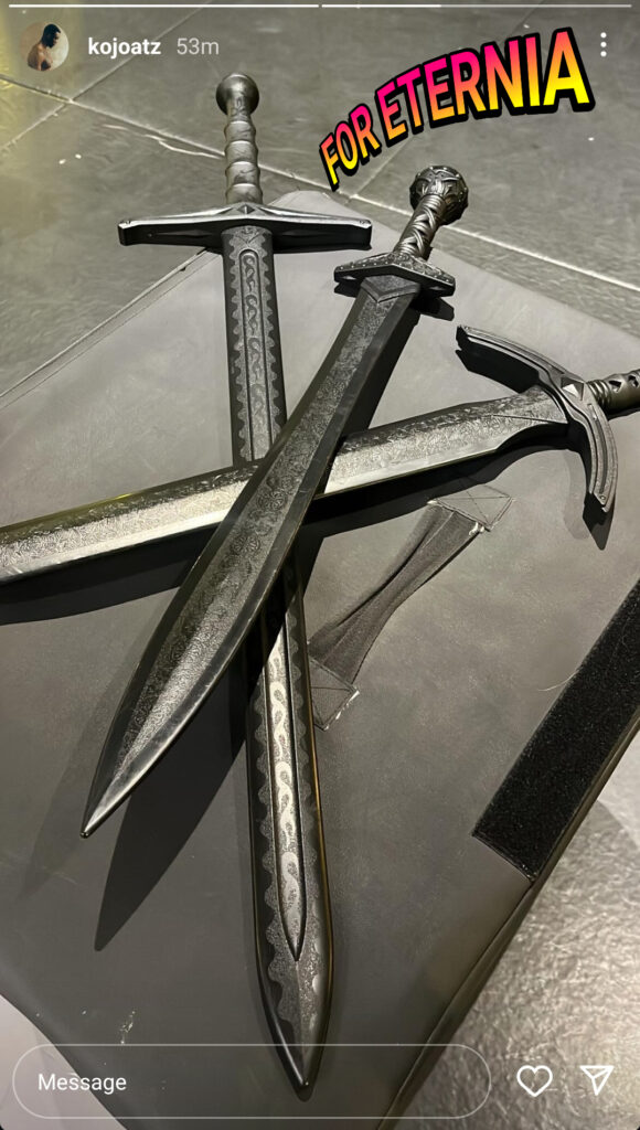 As we still wait for some sort of official confirmation that filming has started for the New “Masters of the Universe” Movie from Amazon MGM Studios and Mattel Films, the newly announced Tri-Klops actor Kojo Attah has shared another image via his Instagram story that has raised a few eyebrows. It is a photo of three ornate swords: