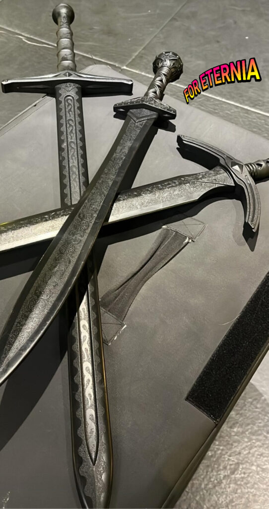 So could these be Tri-Klops’ swords? We doubt the studios would allow any actor to reveal official “Masters of the Universe” movie props to the public (at least not without authorization)… but it is possible!