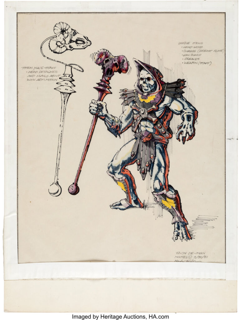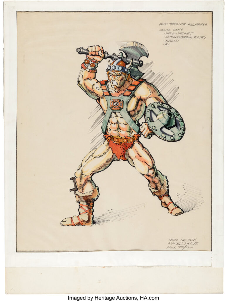 Illustrated by the late, legendary Mark Taylor (whom is considered by many as the aesthetic father of He-Man) and stunning illustrations in their own right, these nine pieces of conceptual artwork is also truly historic… and was instrumental in the development & creation of the core “Masters of the Universe” figures.