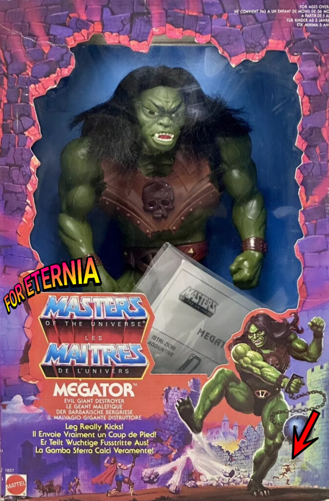 Appearing long ago in 1988 on the Megator figure packaging originally intended for the canceled “Powers of Grayskull” line…