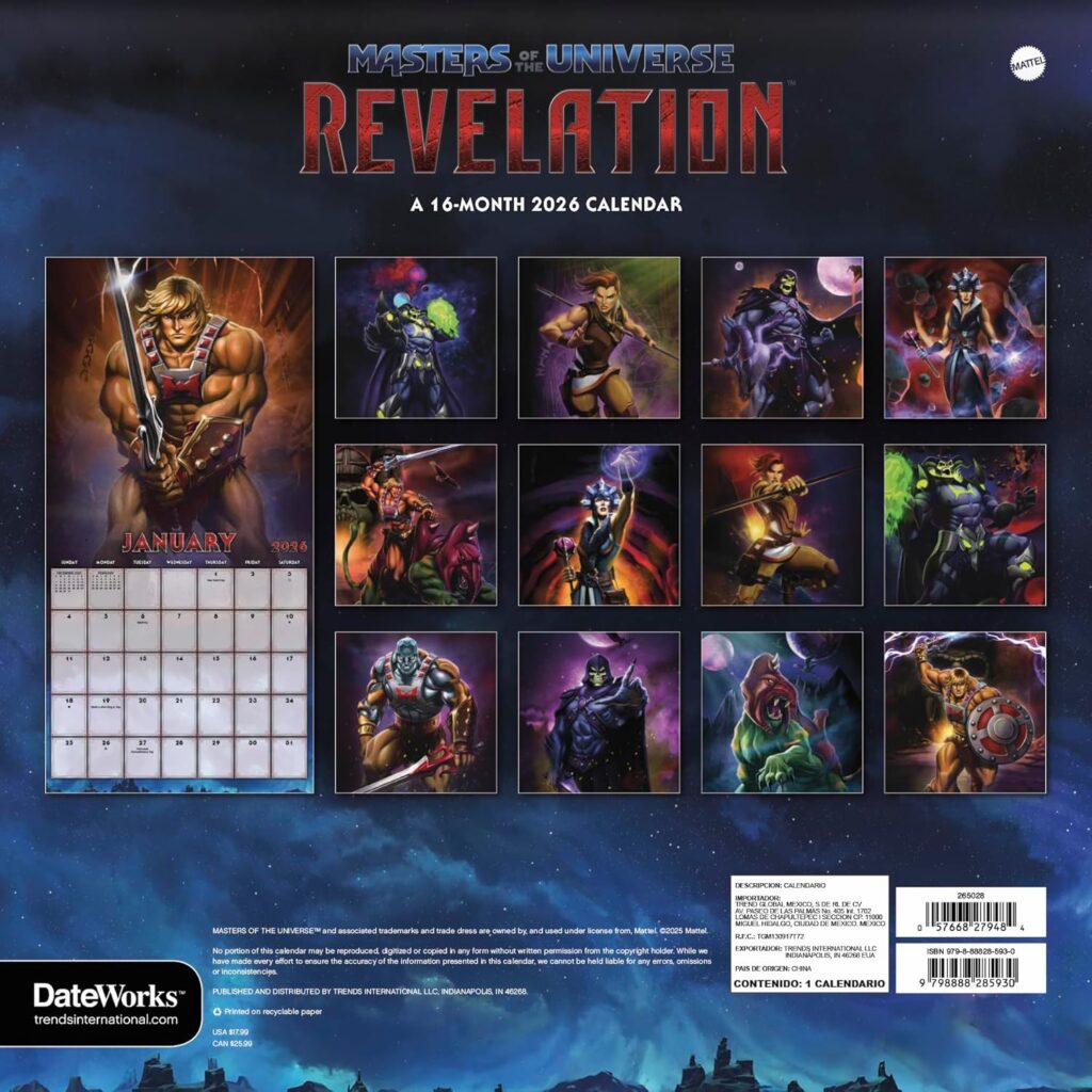 Trends International has just announced a new 16 Month Officially Licensed Calendar for the 2026 (and latter half of 2025) year. It’s theme? The 2021 Netflix Animated Series “Masters of the Universe: Revelation.”