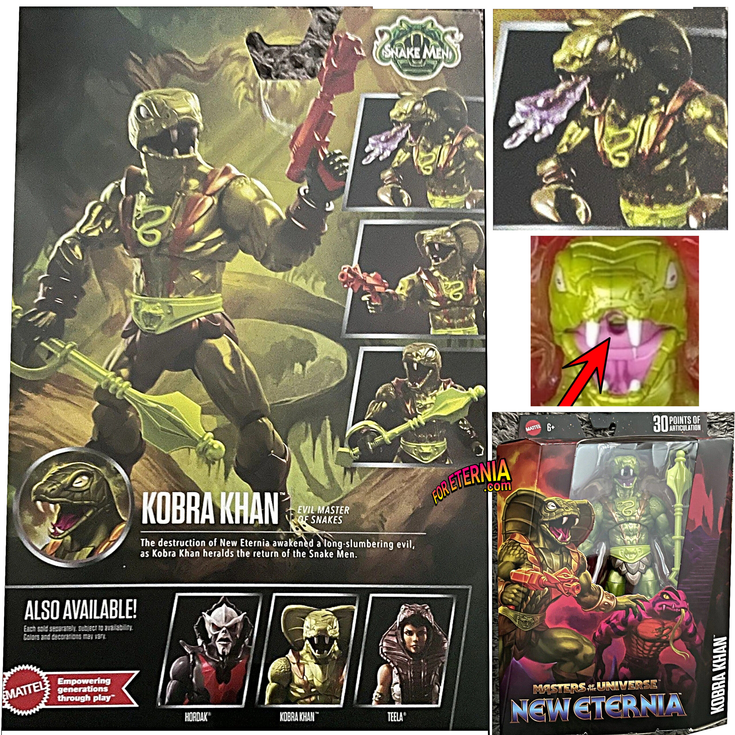Finally getting a look at the back of the packaging for the upcoming Masterverse “New Eternia" KOBRA KHAN Figure, the hole in its mouth is not for an action feature (like the vintage toy) but rather to insert a plastic spray effect. 💥 Thanks to the awesome PrincesseValha1 for the ‘heads up’!