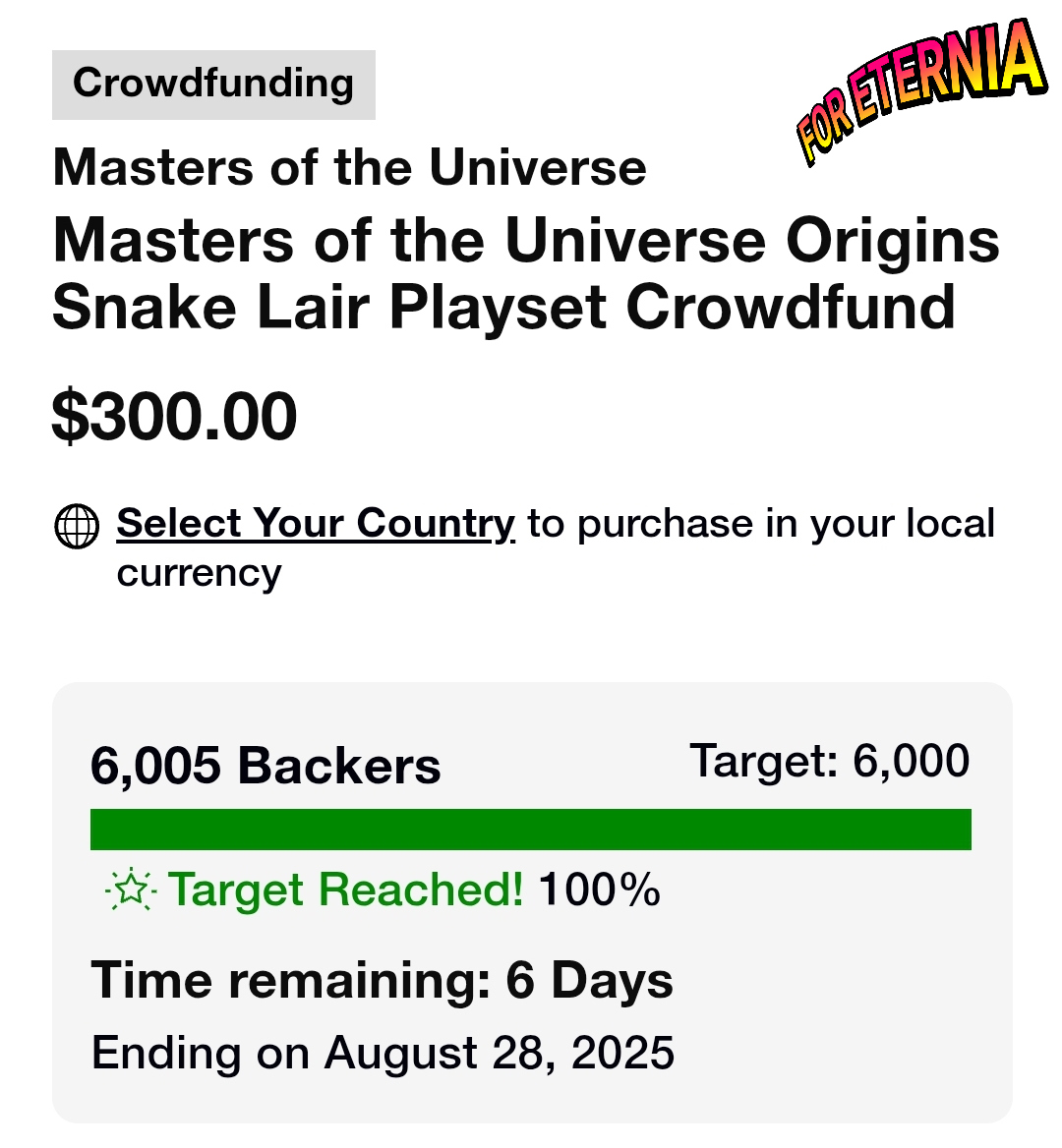With 6 Days remaining, the Masters of the Universe Origins Snake Lair Playset has successfully reached it’s target of 6,000 backers