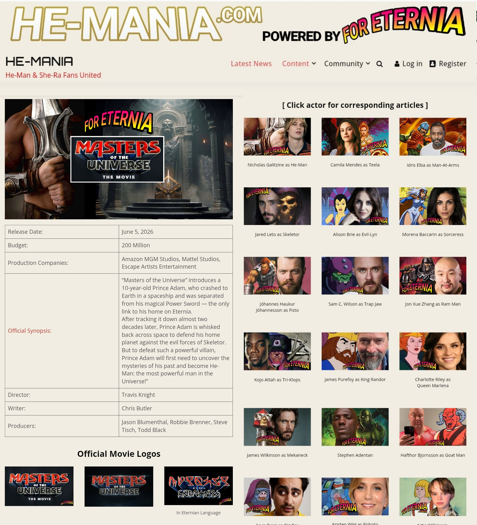 We have established a new page that will be dedicated to tracking all the key information for the upcoming “Masters of the Universe” (2026) Film staring actors Nicholas Galitzine, Camila Mendes, Idris Elba, Jared Leto and Alison Brie. (This page will be regularly updated.)