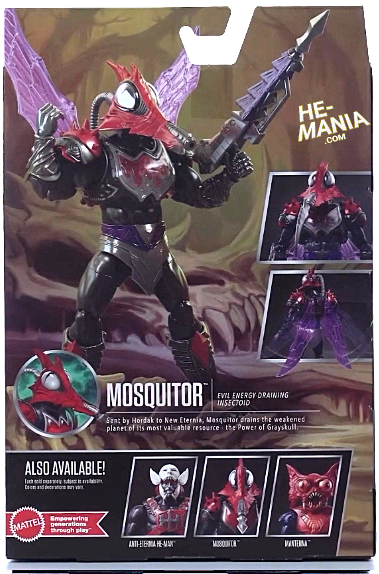 Today we get our first look at the full packaging for the upcoming Masterverse Masters of the Universe “New Eternia” Mosquitor action figure (first seen at this year’s San Diego Comic-Con).