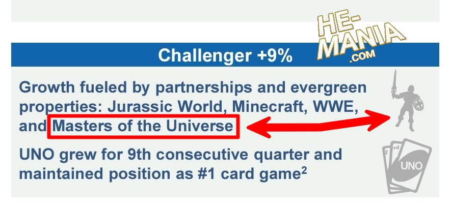 And with the New “Masters of the Universe” Movie coming out in June of next year, we expect those “Masters of the Universe” sales to just to go up and up!