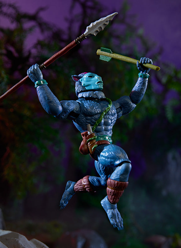 From the mists of Preternia a masked enigma emerges: the Masters of the Universe Origins Red Shadow action figure. A beast man shunned by his people, Red Shadow was forced to wear a mask and serve the Great Black Wizard until he was freed by Moss Man. The mask remains, but Red Shadow uses his abilities (and included club, dagger, and spear) to fight for King Grayskull.