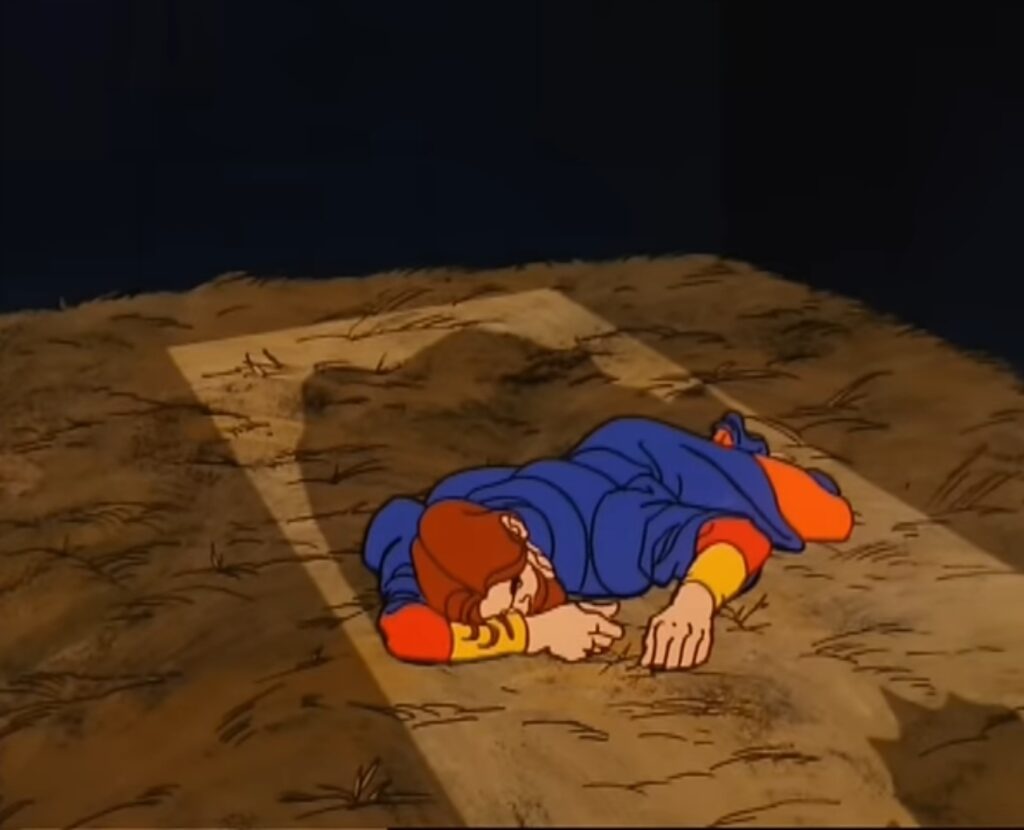 This episode is a fan favorite although there are lots of hand waiving needed to get through it like why are they so trusting of Magestra when she came from Orko’s demon dust? Why didn’t they transform King Randor into something else? Any Eternian Guard can walk by and see that cell and see the King in there. How can the Sorceress be tricked so easily? The fun still outweighs the silly. I liked seeing the royal dungeons and Prince Adam’s bedroom. Orko as a cricket was hilarious. So was the Teela Frog with long eyelashes. Faker still needed a better origin than Skeletor thinking him up and the next second he exists. Its too bad he never got one.