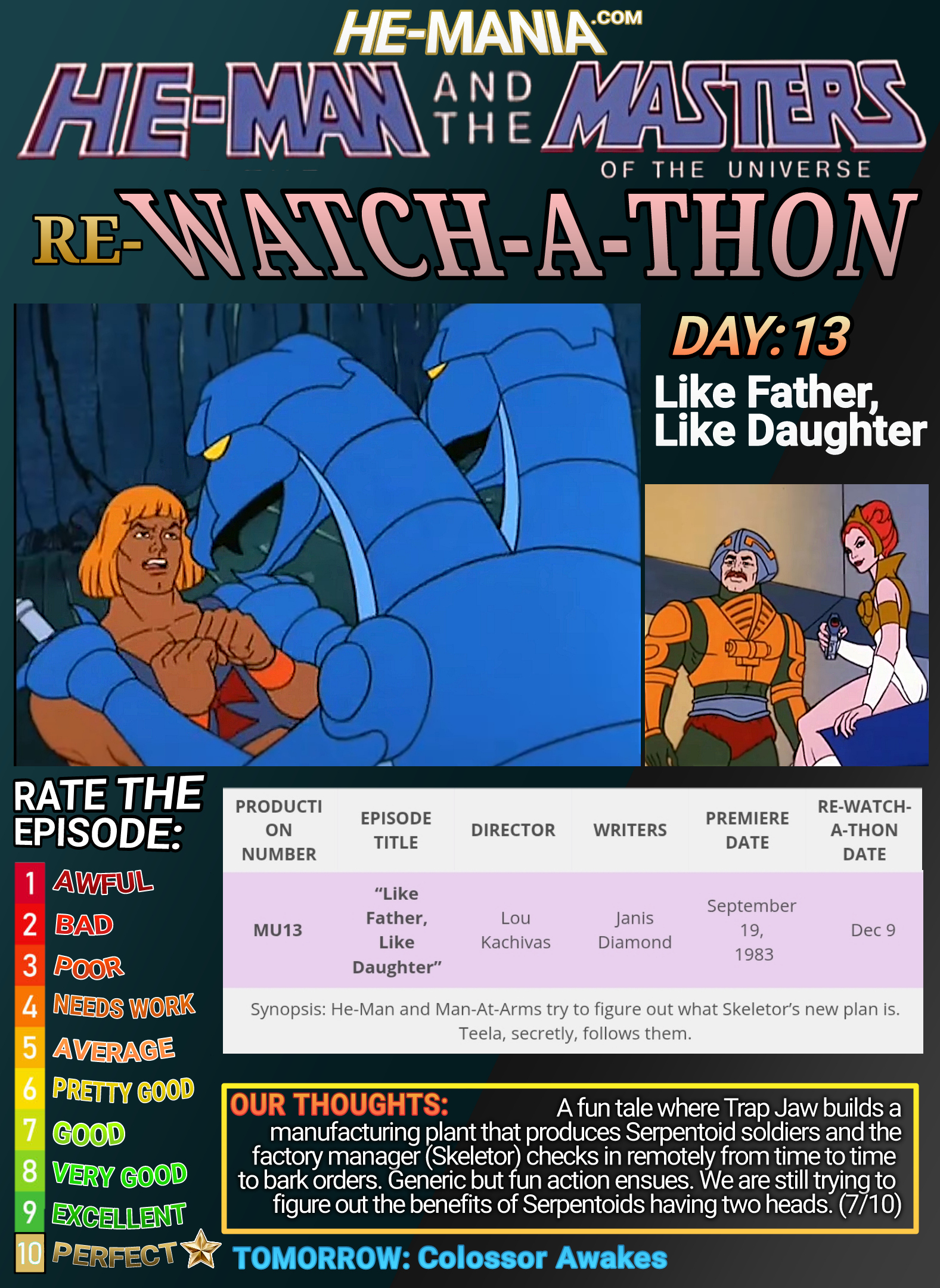 RE-WATCH-A-THON Day 13! He-Man and the Masters of the Universe Episode (MU13) “LIKE FATHER, LIKE DAUGHTER”