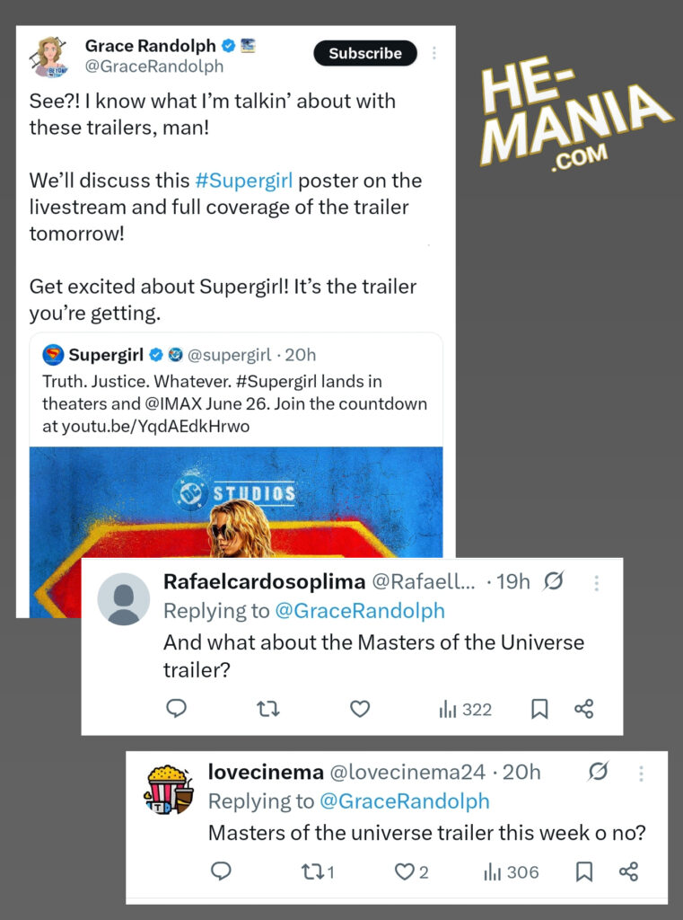 …the “Masters of the Universe” trailer was not announced. This caused fans to ask for an update on the “Masters of the Universe” trailer, questions Grace Randolph seemingly hasn’t answered as of yet.