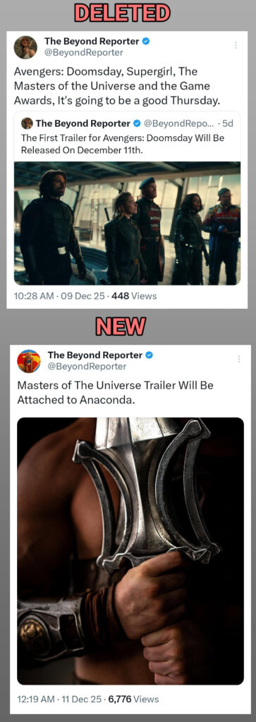 TRAILER DAY WOES? Insiders seemingly go silent or delete post about the “Masters of the Universe” Trailer debut