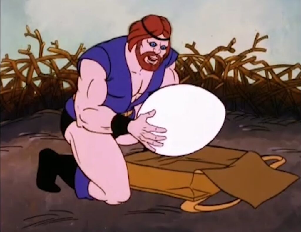 This is the best Battlecat episode of the series, even better than the episode “Battlecat" where he doesn’t even have a line in the episode named after him. I feel like writers sometimes didn’t know how to write him the way they did Cringer, but this episode shows how to utilize his full potential and his parternship with He-Man. I love their banter back and forth, and I really love the constant use of the phrase “He-Man AND Battlecat." Kind of like when Batman and Robin burst in but the villain only shouts “Batman!", it’s nice to see the partner get his acknowledgement.