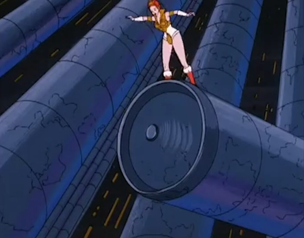 That brief moment of Teela aimlessly running in a weird room of big pipes is kinda funny.