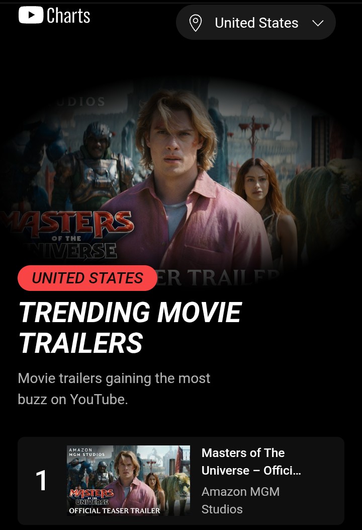 Trending in the US. Over 17 million views on just the Amazon MGM YouTube account alone with the Sony accounts racking up millions on their various accounts.