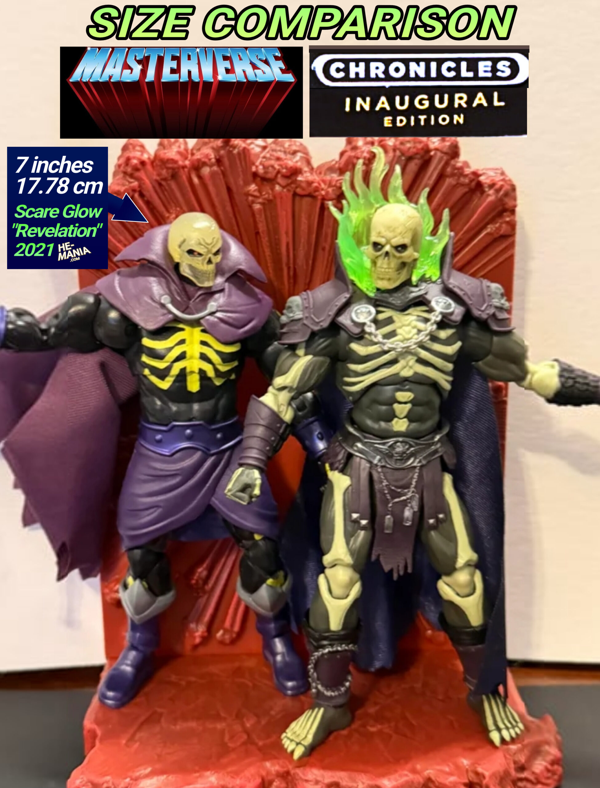 SIZE COMPARISON:Comparing the size of the Masterverse “Masters of the Universe: Revelation” Scare Glow figure with the Chronicles “Inaugural Edition” Scare Glow figure just recently revealed.