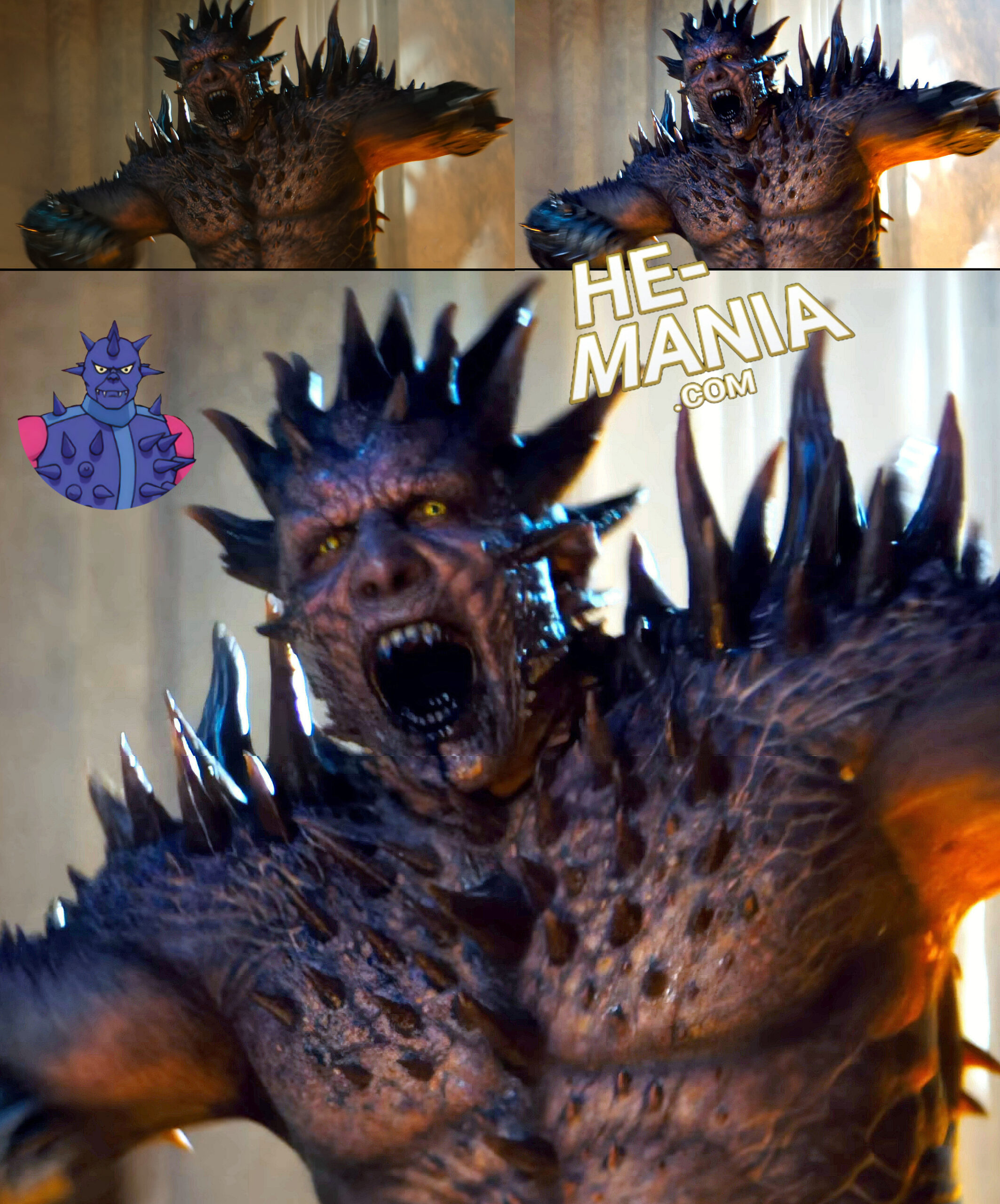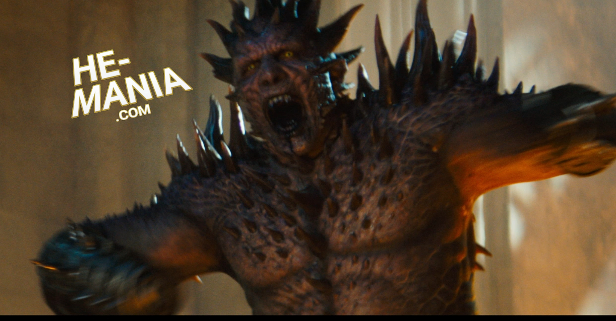 Not noticing the “purple” on Spikor in the “Masters of the Universe” movie trailer, we decide to remove what appears to be an earthy brown filter from the brief trailer moment featuring Spikor.