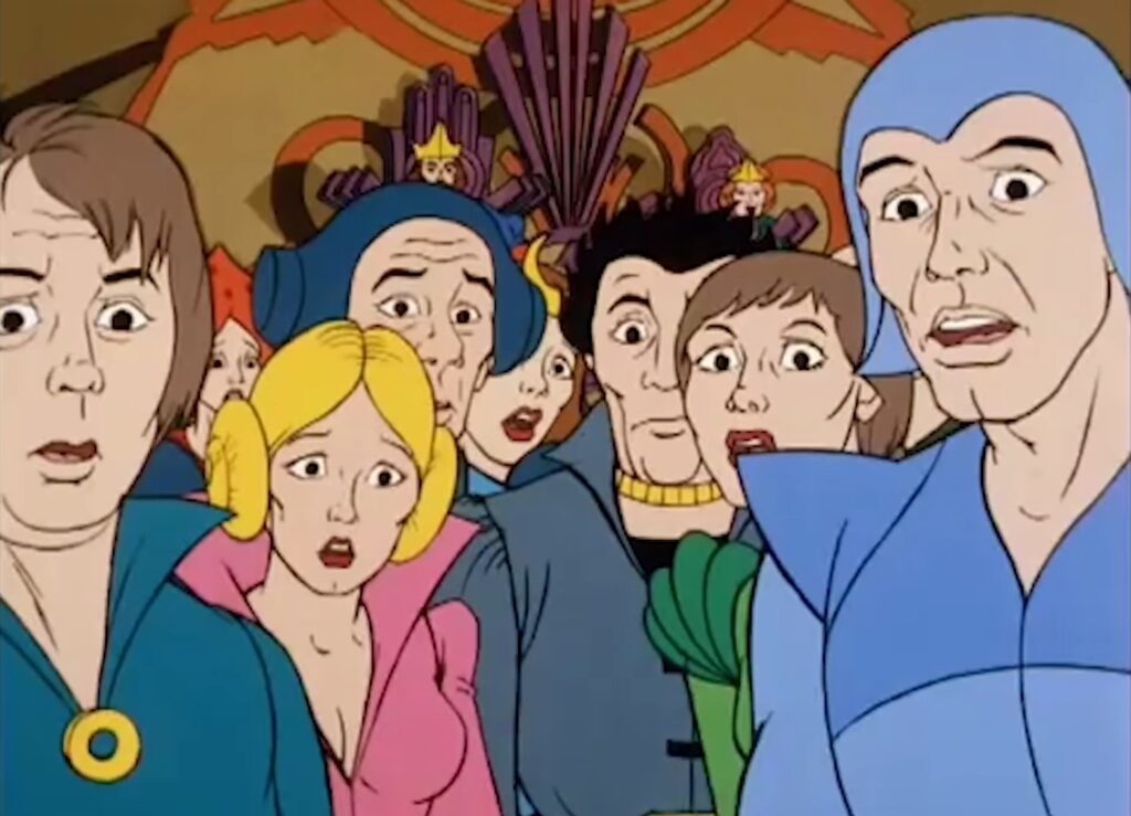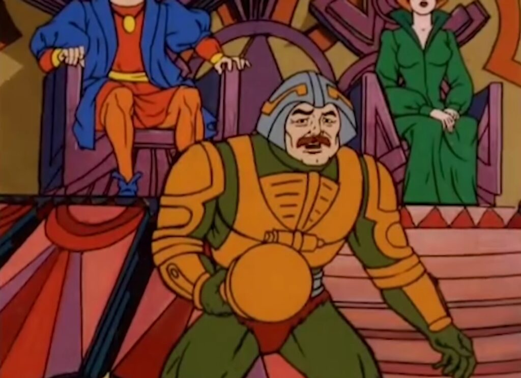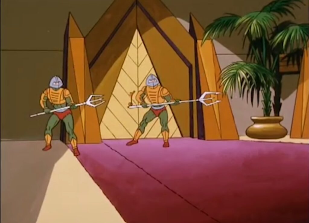 But one thing I’ll say about this episode (and Season 2 in general) is how much grander a lot of things feel. When I first revisted episodes a few years ago, I found that I remember most of the plots of a lot of Season 1 episodes, but a lot of my memories of Season 2 and 3 came from specific shots – like in this one with all the Heroic and Evil Warriors standing together, the heroes chained up outside of Snake Mountian in “The Rainbow Warrior", or He-Man fighting Mer-Man underwater in “Jacob and the Widgets." for example. They definitely have moved to more interesting and unique shots, and the shots of the palace make it feel bigger, and I feel there are a lot more background characters and crowds when you would expect them.
