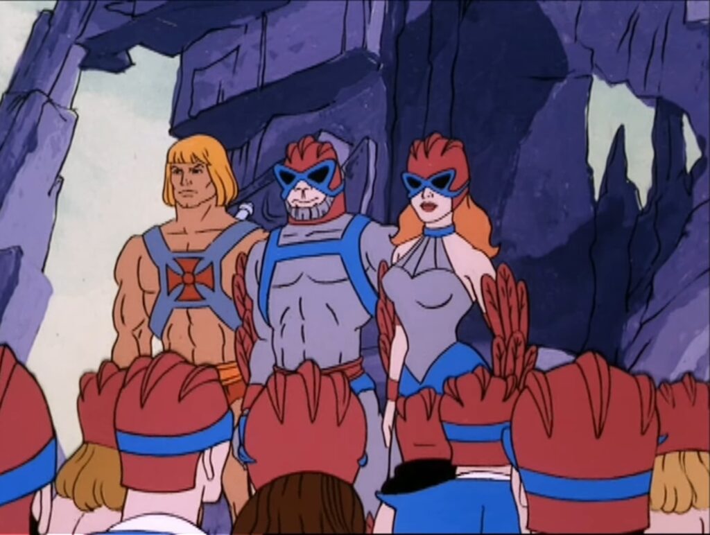 Question: I feel like in some MOTU media, mainly 200x Stratos and Buzz-Off are supposed to be the leaders/princes of their respective races but they’re rarely seen ever leading them or ruling their domain. I say 200x because they’re almost always with the Masters as a unit. I mean here in the Filmation series, they only show up now and again, so it makes sense they’re likely doing it offscreen but still.